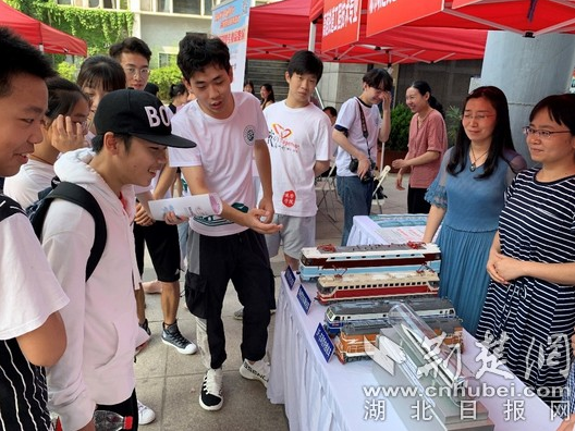 荊楚網(wǎng)客戶—荊楚網(wǎng)消息(記者齊一璇 大學(xué)生記者劉鳳珍 攝影周潤澤)6月23日上午,“2019荊楚專業(yè)品鑒展”在楚天181文化創(chuàng)意產(chǎn)業(yè)園舉行。武漢鐵路職業(yè)技術(shù)學(xué)院展出的大量列車模型,吸引了參觀學(xué)生的圍觀。