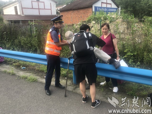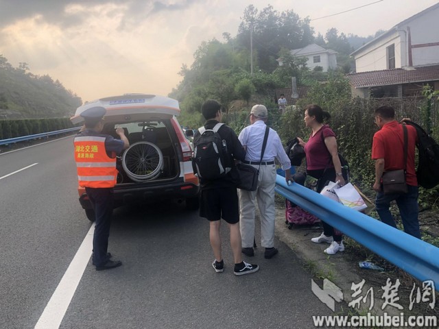 荊楚網客戶端一荊楚網消息(通訊員劉殿雄、吳克思)6月24日,在麻安高速湖北段十堰境內,一輛小車拋錨車上4人被困高速,車上還有一名94歲老人,在司機舉足無措時,幸好遇到湖北高速路政漢十支隊谷竹第二大隊路政人員及時伸出援手,將他們安全轉移到高速公路出口。