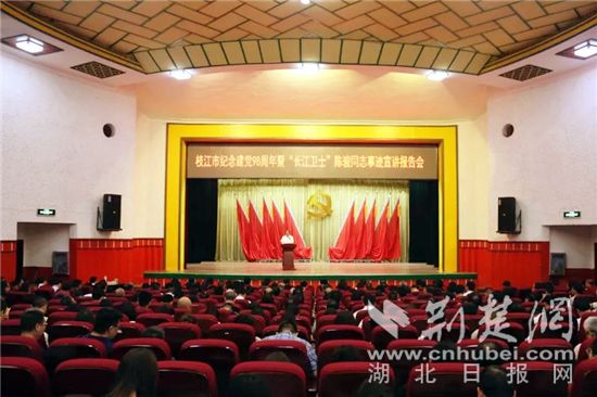 枝江市舉行紀念建黨98周年暨“長江衛士”陳駿同志事跡宣講報告會。通訊員 供圖