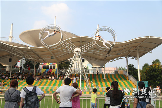 同時,園區眾多精彩演繹活動輪番上演,歡樂如影隨形。在不累行星的極速舞臺,極限大秀同步上演,環球飛車上演現場版動作大片,在鐵籠中完成一個又一個的高難度動作。生死輪的特技表演者在沒有任何保護措施下,在高速旋轉的輪外驚險跳繩、表演雜技,場面震撼,讓不少游客不由自主捂住嘴巴屏息觀看。
