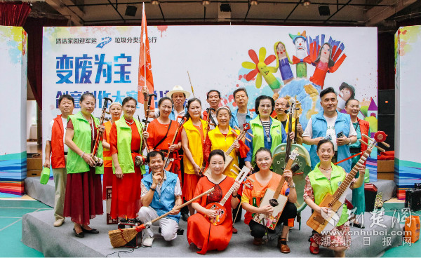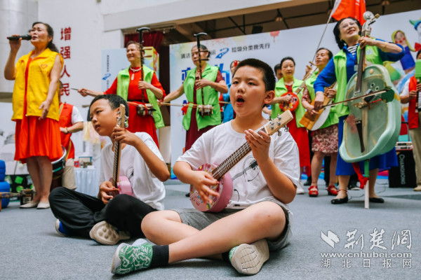 活動現場,環保樂隊為大家演奏了《春天在哪里》、《我和我的祖國》等曲目。來自洪山區城管執法局應急指揮中心的“快板大叔”商金華,則帶來了他原創的快板《垃圾分類就是新時尚》。
