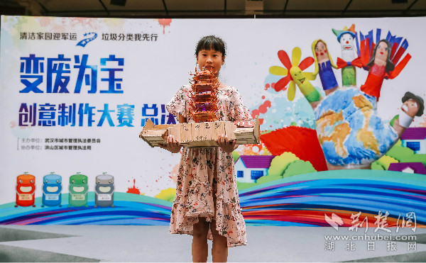 荊楚網客戶端一荊楚網消息(記者丁楚風 通訊員董德禹 劉洪凱)利用生活垃圾中常見的瓶子、紙箱、泡沫、木塊等物品為原料,到底可以創作出怎樣的工藝品?7月3日上午,武漢垃圾分類創意大賽總決賽在洪山區舉行,現場作品讓人直呼“腦洞大開”。