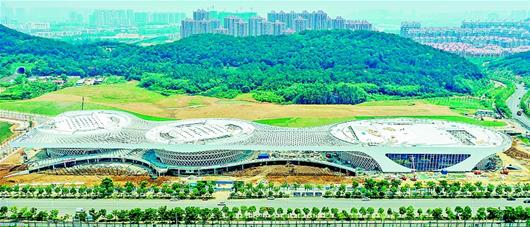 7月2日,俯瞰武漢江夏大花山戶外運動中心項目主體結構。該項目已于近期全面封頂,目前正在進行最后的收尾施工。該項目占地面積787.5畝,總建筑面積7.9萬平方米,是第七屆世界軍人運動會定向越野項目委員會辦公地點和“三大項八小項”賽事場館之一,也是江夏區重要的體育設施項目。