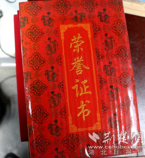 黃宗志退休后獲得的榮譽證書。通訊員 張云朝 攝