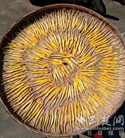 黃宗志的鄰居連曬金針干都排成了花型,一只黑蜂誤以為真。通訊員 張云朝 攝