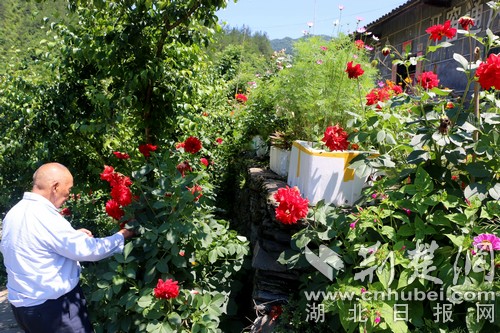 為了助力美麗鄉村建設,他將自己培植的花卉,送給了他附近3公里左右的鄰居,每家4盆花。教育村民“要用鮮花迎客,不能用雞屎迎客。”還將兩大盆花送到了村委會,每周自己去給花卉澆澆水,修剪修剪,叮囑村里的年輕干部要照顧好花卉。在他的帶動下,整個佛洞村公路沿線,每個農家小院都是花園。“我每天早晨起床后,首先到我的小花園里看看,轉轉,扯扯草,捉捉蟲,掐掐老葉子,呼吸著新鮮的空氣,欣賞著五顏六色的花卉,給人一種賞心悅目的感覺,多好啊!”今年又有64個村民,請他預留花種,明年好進一步發展庭院花卉。