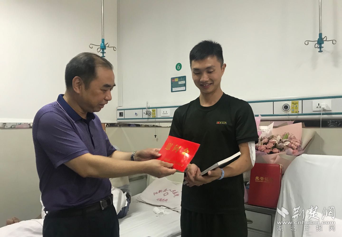 圖為湖北省退役軍人事務廳二級巡視員徐航看望尹文杰。