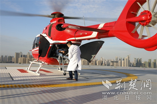 本次救援任務,是武漢亞心總醫院首例使用直升機搭建“空中生命通道”,為重癥患者打通“空中生命線”, 據悉,為了最大限度保障空中救援的“效率”,亞心總醫院設置了液壓梯轉運系統,專用直升機急救通道等配套設施。將“空中120”與“地面120”有效結合,空地聯動無縫對接組成立體的“空-地”急救系統,讓傷病患者在“黃金時間”內入院治療。