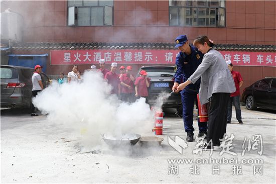 荊楚網客戶端—荊楚網消息(通訊員 吳照華)“報告消防控制室,我發現酒店五樓一客房著火,目前火勢較大,請立即撥打119電話報警。”7月9日上午,湖北恩施野三關消防救援中隊深入轄區星火酒店為員工開展消防演練,模擬五樓一客房起火,酒店迅速啟動預案機制,檢驗酒店員工聯合進行應急救援和應急處置的能力。