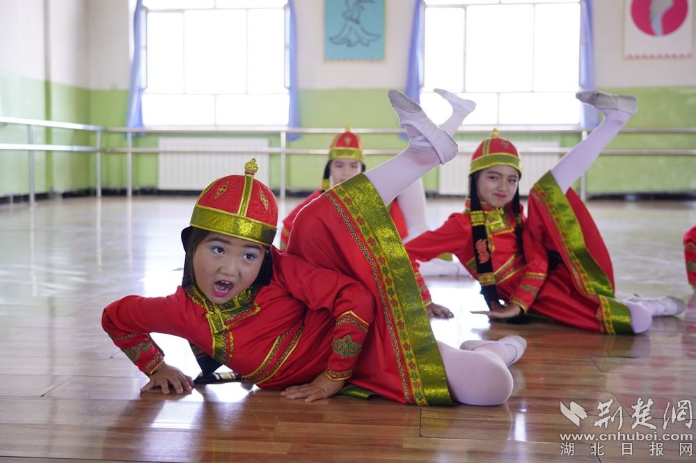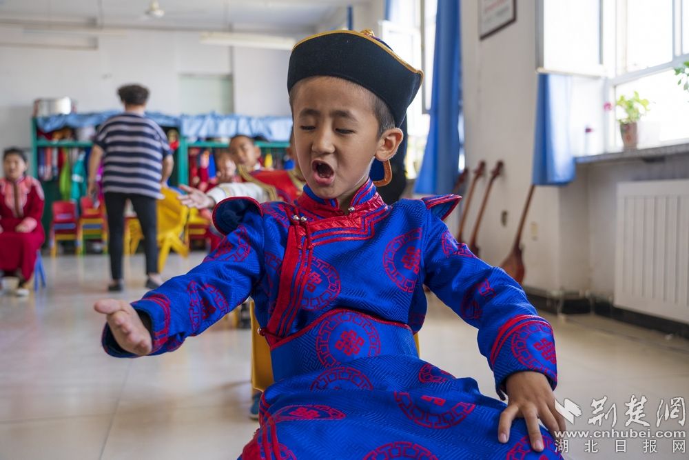 圖為:小學生正在表演“江格爾”。記者 劉建維 攝
