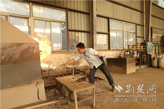 靠近爐旁,一陣熱浪席卷全身,相比之下,車(chē)間外的35℃室外溫度竟算得上“清涼”。檢驗(yàn)員田剛守在一邊,身上的工作服早已被汗水浸透。“一二三,起!”只見(jiàn)一個(gè)鋼瓶剛從焚燒爐探出頭來(lái),田剛就迅速上前,將冒著火的鋼瓶從爐中提起,一股熾熱的火舌隨之噴出。