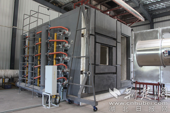 在位于葛店華頂工業園的消防檢驗中心全項燃燒檢測實驗室,記者見到了一個造型十分特別的"大家伙"。從外觀來看,這是一間寬約3米、高約4米、長約5米的深灰色房間,側面整齊分布著數條橙色管道,正面的"門"和"窗"分別連接了兩條10余米長的管道。