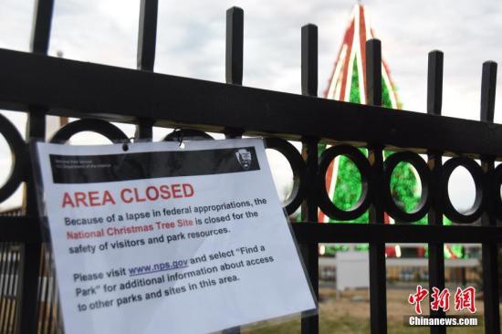 當地時間12月23日,受政府“關門”影響,位于白宮前的國家圣誕樹區域因“政府撥款缺失”關閉。中新社記者 沙晗汀 攝