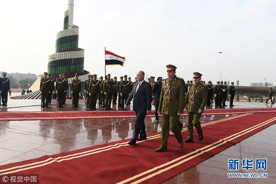 當地時間2019年1月6日,伊拉克巴格達,伊拉克建軍節慶祝儀式舉行,伊拉克總統巴爾哈姆·薩利赫出席。(圖片來源:視覺中國)