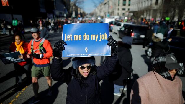 當天,上千名聯邦雇員前往白宮門口舉行抗議活動,抗議者高舉“結束關門”“我們要工作”“我們要報酬”等標語,抗議聯邦政府停擺。