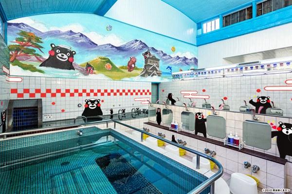 人民網東京1月22日電 據《朝日新聞》網站報道,日本熊本縣與東京下町的澡堂合作,推出了熊本吉祥物熊本熊kumamon的主題澡堂。澡堂內裝飾著熊本熊圖案,墻上畫的不是富士山,而變成了阿蘇五岳。
