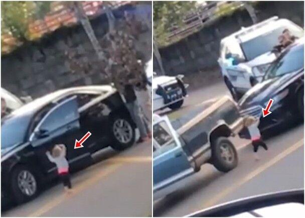 網上流傳的現場視頻片段可見,兩人就擒后,在車上的女童也打開車門中走出,高舉雙手、赤腳走到警員面前。