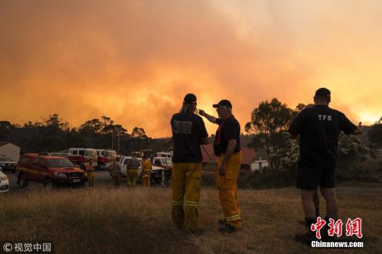 資料圖:當地時間1月21日,澳大利亞塔斯馬尼亞地區,當地因閃電引發大面積火災,濃煙滾滾。圖片來源:視覺中國