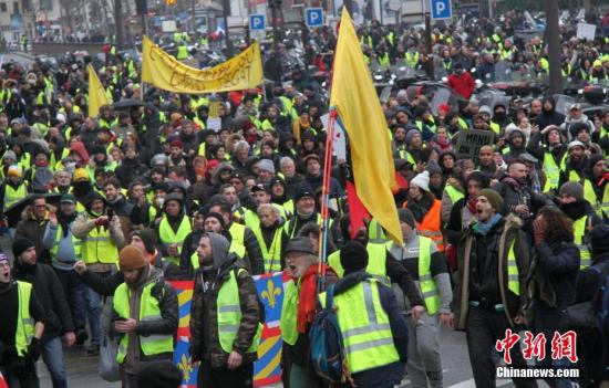 資料圖:當(dāng)?shù)貢r(shí)間1月19日,巴黎遭遇自2018年11月以來(lái)的第十輪示威。圖為示威游行隊(duì)伍當(dāng)天穿過(guò)巴黎市中心。中新社記者 李洋 攝