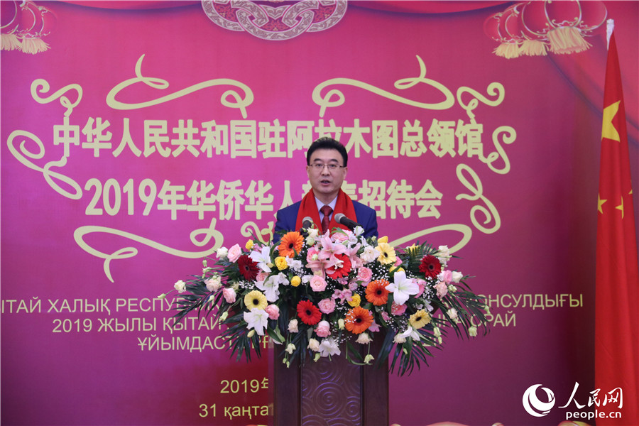 人民網阿拉木圖2月1日電(記者 周翰博)1月31日,中國駐阿拉木圖總領事館在哈薩克斯坦最大城市阿拉木圖舉辦華僑華人新春招待會。領區華僑華人、中資機構和企業代表、漢語教師、留學生及各界友人歡聚一堂,共迎佳節。