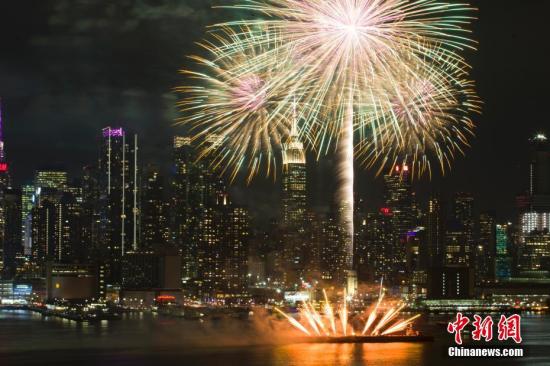 資料圖:紐約上空燃放焰火慶祝中國春節。中新社記者 馬德林 攝