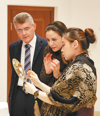 近日,在馬耳他中國文化中心的“歡樂春節(jié)”活動上,唯美的蘇繡作品引得來賓的驚嘆。 本報記者 葉 琦攝