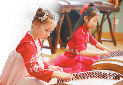 2月2日,在莫斯科郊外中共六大會址展覽館舉行的新春聯(lián)歡會上,中俄小朋友合奏古箏。 本報記者 殷新宇攝