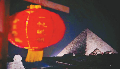 2月2日晚8點(diǎn)整,埃及首都開羅的吉薩金字塔群被“中國紅”點(diǎn)亮,并迎來了全新的中文配音版聲光表演首秀。古老的獅身人面像、雄偉的金字塔披上紅妝,成為夜空中絢麗的焦點(diǎn)?,F(xiàn)場來自中國、埃及的各界民眾以及各國游客近3000人以這一特殊方式,共慶中國新春。