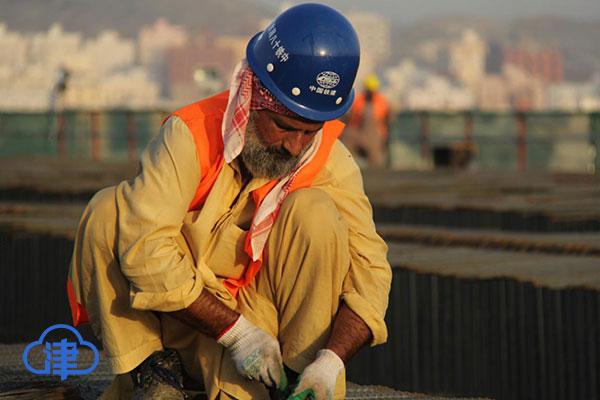 中鐵十八局集團外籍員工在沙特朱拜爾TS-8高速公路梁場綁扎制梁鋼筋(徐名峰 伍振 攝)