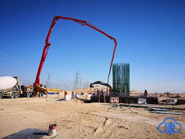春節期間,中鐵十八局集團沙特公司朱拜爾TS-8高速公路項目部建設者舉行完升旗儀式后就奔赴工地一線。施工現場,推土機、壓路機、平地機像辛勤的螞蟻一樣在浩瀚的沙漠來回穿梭;混凝土輸送泵伸出像大象長鼻子的輸送管給橋臺、橋墩澆筑混凝土;一榀榀T型梁和一個個橋墩整齊地排列,像一排排整裝待發整齊劃一的士兵。