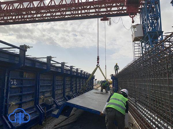 中鐵十八局集團施工的沙特朱拜爾TS-8高速公路梁場立模制梁施工現場