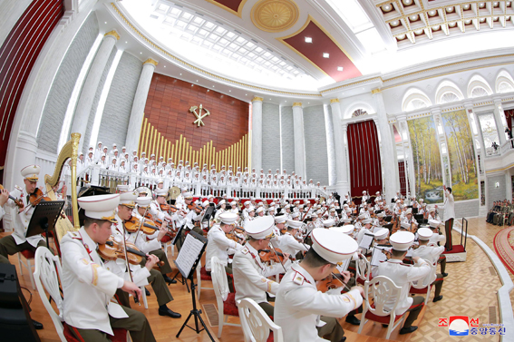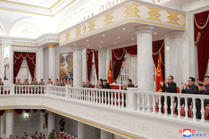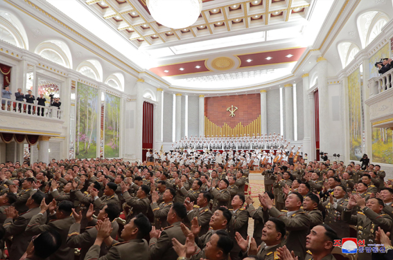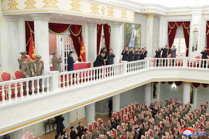 人民網訊 據朝中社消息,在朝鮮人民軍建軍71周年之際,朝鮮勞動黨委員長、朝鮮國務委員會委員長、朝鮮人民軍最高司令官金正恩8日同朝鮮人民軍全體大聯合部隊、聯合部隊首長一起在勞動黨中央委員會總部特別樓觀看功勛國家合唱團的慶祝演出。金正恩和夫人李雪主入席觀禮臺。