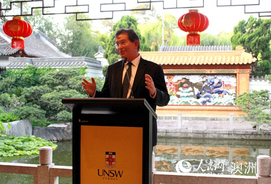 新南威爾士大學校長伊恩·雅各布斯在招待會上致辭(攝影 沈諾)