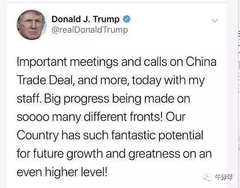 牛彈琴(bullpiano)注意到,就在劉鶴副總理率代表團赴美前夕,就中美經貿問題,美國總統特朗普又發表了多條推特。