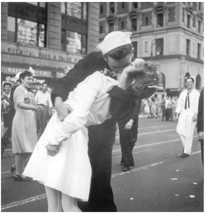 勝利之吻是攝影師艾森斯塔當年為《生活》雜志(Life)拍攝的4張照片之一,標題是“對日作戰勝利日的時報廣場”, 門多薩在照片中彎身親吻一名身穿白色護士服的女子。