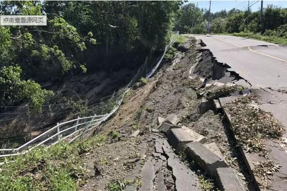 北海道厚真町曾多次發生地震。圖為一次震后道路上出現的裂縫