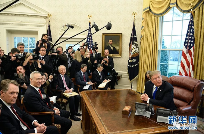 2月22日下午,在白宮橢圓形辦公室,特朗普再次會見了來美磋商的劉鶴副總理。