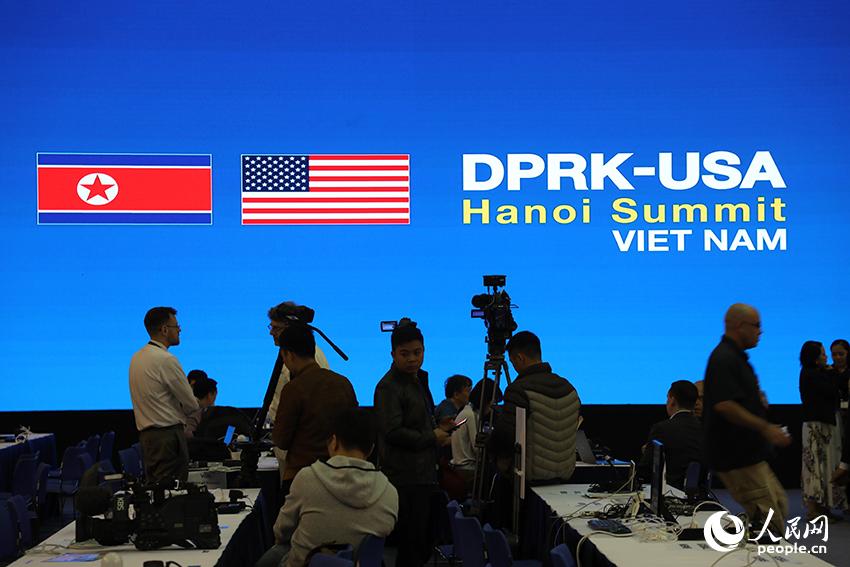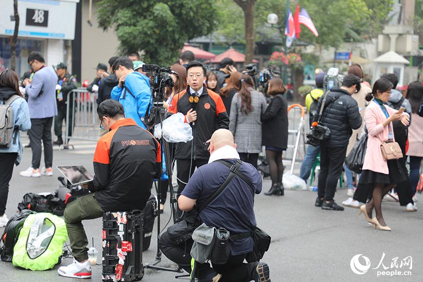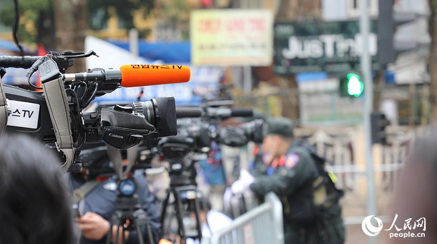 人民網河內2月27日電 (記者 趙益普)當地時間2019年2月27日,第二次朝美領導人會晤進入最后倒計時,記者扛長槍短炮嚴陣以待。