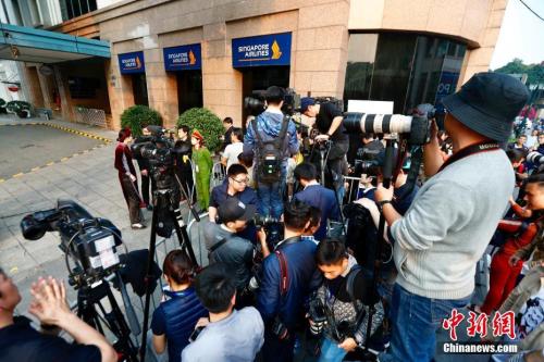 當地時間2月27日,第二次朝美首腦會晤即將舉行,大批媒體記者在會晤地點外聚集。中新社記者 富田 攝