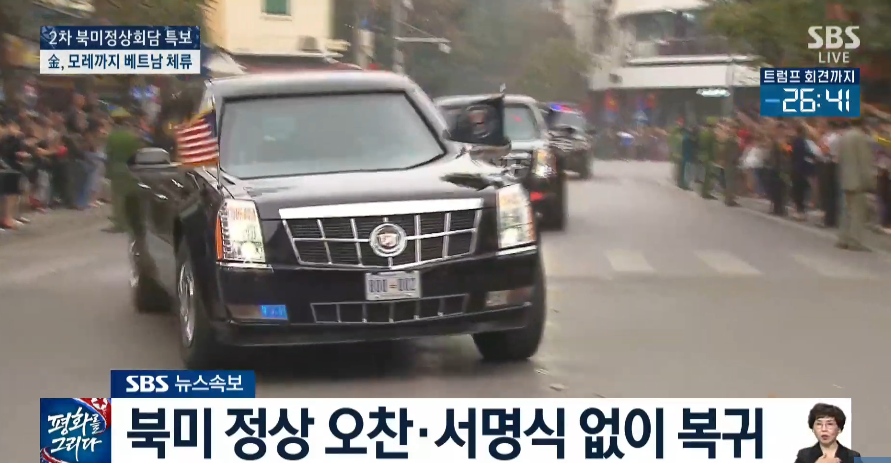 多家外媒及其前方記者消息說,金特會議程發生了很大變化。環球時報-環球網赴越南特派記者得到消息也是,朝美工作午餐和聯合簽約儀式取消。金正恩車隊已離開大都會酒店會談現場。