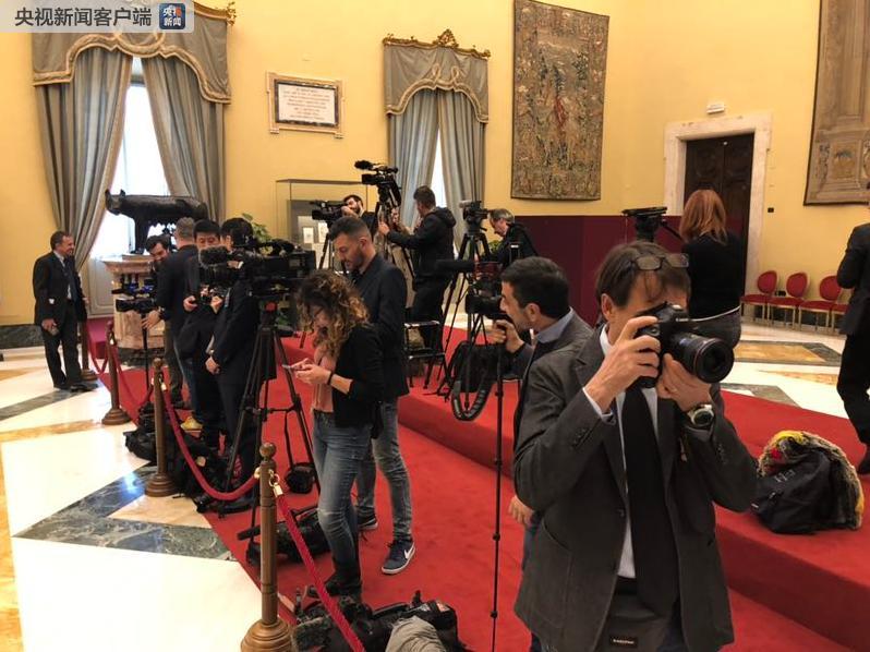 當地時間3月22日下午17點多,習主席驅車來到意大利眾議院,會見意大利眾議長菲科。