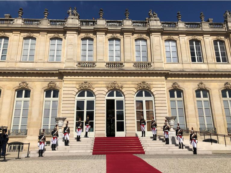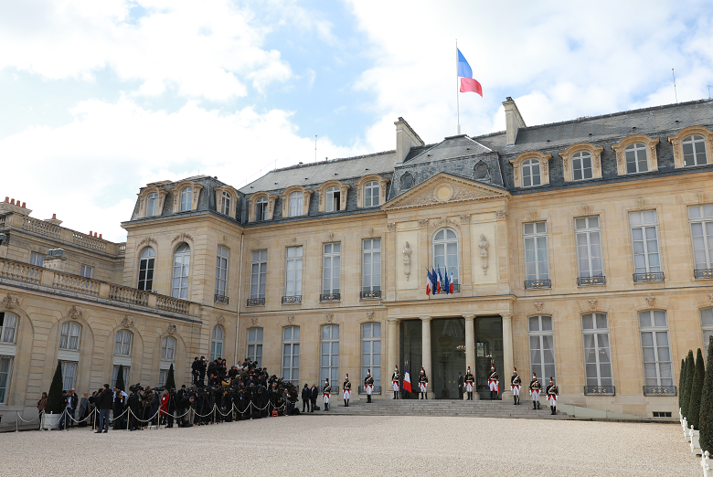 26日,習近平在巴黎的第一場和最后一場活動都是在法國總統府愛麗舍宮進行。