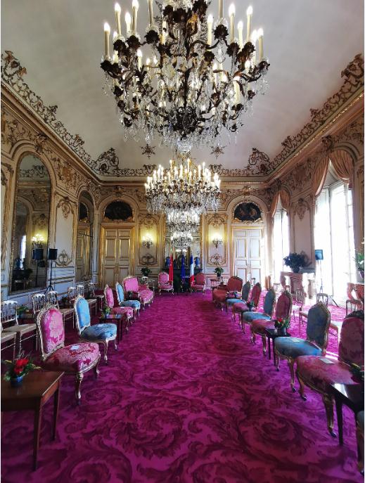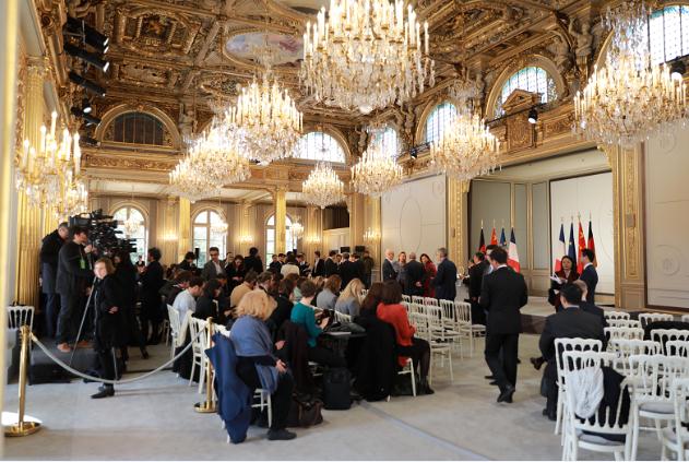 △閉幕式在愛麗舍宮一層節日大廳舉行,這是開始前的場景。(央視記者拍攝)
