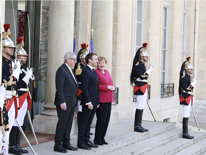 閉幕式上,馬克龍、習近平、默克爾、容克先后致辭。馬克龍在發言時引用了《論語》中的一句話,“益者三友,損者三友。友直,友諒,友多聞。”他說,在座的都是正直的朋友,是言而有信的朋友。