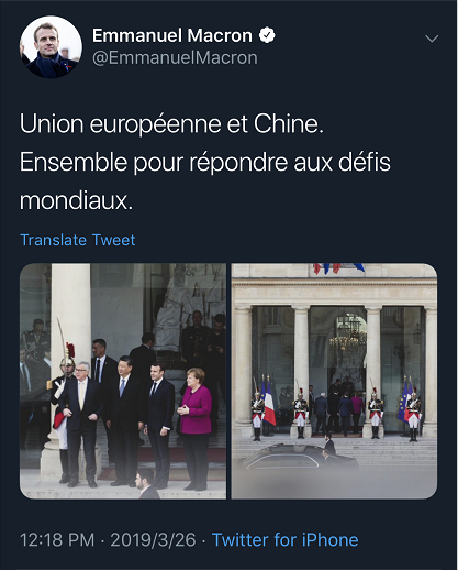 在愛麗舍宮,習近平出席了中法全球治理論壇閉幕式。為期兩天的論壇由中國國務院新聞辦公室和法國外交部共同主辦,是中法雙方首次舉辦全球治理論壇。