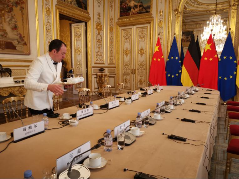 △習主席的講話獲得與會歐洲領導人的高度贊同。當天中午,馬克龍總統在社交媒體上說:“歐盟與中國,攜手應對全球挑戰。”(央視記者康玉斌提供)