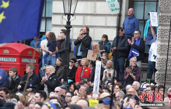 3月23日,英國倫敦市中心舉行了大規模呼吁舉行“第二次脫歐公投”的示威游行。中新社記者 張平 攝