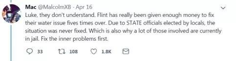但庫茲馬的不滿也遭到了其他一些美國網民的反駁。他們的理由是,前兩天弗林特市已經拿到了一筆美國聯邦政府給予的7700萬美元的免息貸款,而且這筆貸款還可以被完全免除,供水管網的改造2019年就能完工,所以庫茲馬不該再指責美國政府不顧忌自己的老百姓。