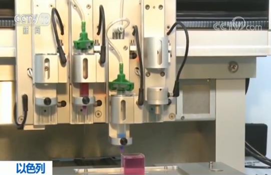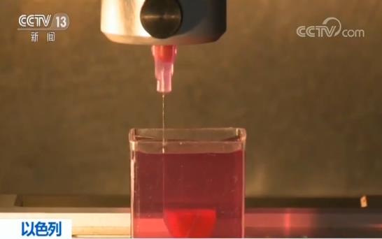 記者:“一個完整的人類心臟模型的3D打印過程是:生物墨水正在通過兩根管子,兩個針頭噴射到這個小盒子里面的凝膠中,而一個小的心臟正在我們面前逐漸的成形。科學家們告訴我們,現在打印一個這樣的小心臟只需要3個半小時,不過他們則是花了3年多4年的時間才摸索出來一個這樣的打印方法。”