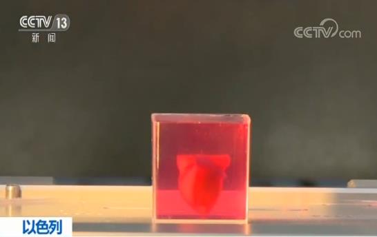 記者 趙兵:“這個無論從大小還是外形上都像是一個小櫻桃的,就是這回以色列科學家通過3D打印技術制作出來的一個所謂完整的人類心臟。雖然它的直徑 它的長度不到兩厘米,但是大家也不要小看,因為它的結構是跟人類心臟的結構完全一樣的,上面藍色的部分是血管,包括它里面還有心室和心房,更重要的是它的原始細胞是從患者身上直接提取的,這也給未來這種器官移植可能帶來的排異反應提前進行了排除。”